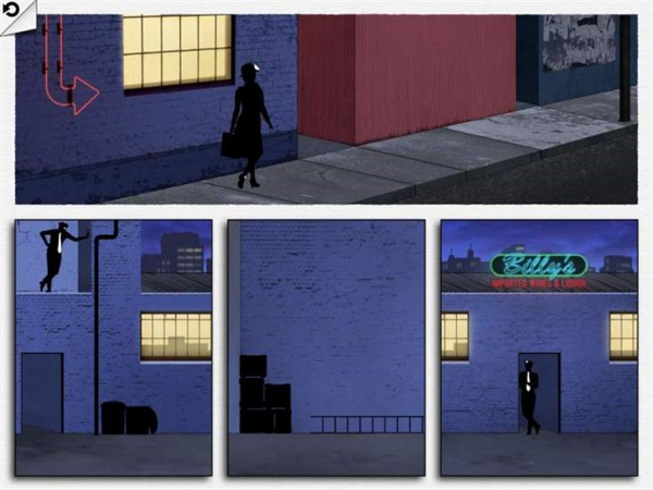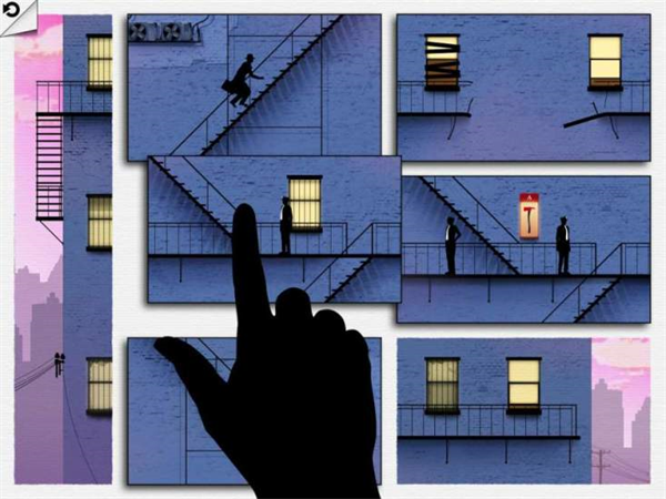 按照下图所示的致命框架攻略移动插画的位置,这样主人公便可以顺利躲过警察的追捕并且借助左下角图片上的钩子滑到最后一幅图上,避开那些讨厌的木棍。