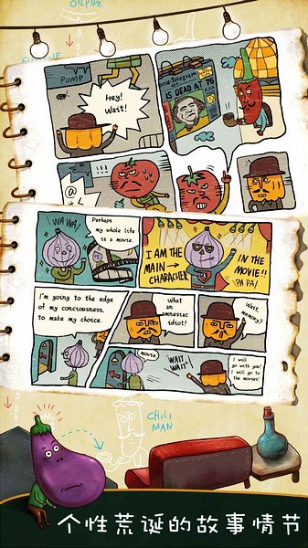 南瓜先生留着两个小胡子,用他的冒险勾勒出一个荒诞的蔬菜王国世界。随处可见一些小谜题或提示,可以看出制作人的匠心和这个荒诞世界的秘密,等待玩家仔细探索。