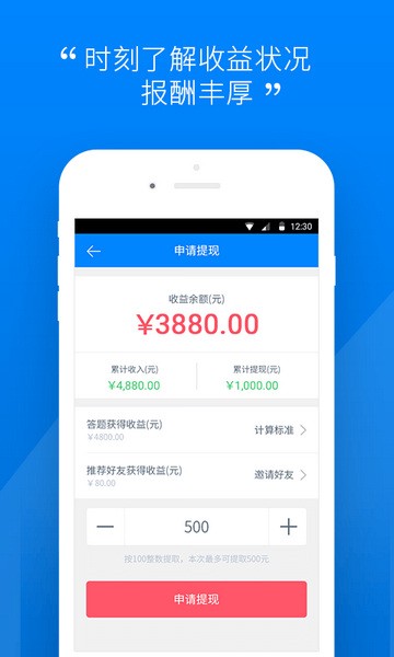 3、随时可以申请提取佣金,使用提现申请功肩能能快速提现赚取的收益。