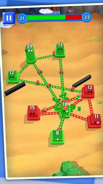 占领那个城是一款规则很简单,但是想要获得胜利却很有难度的策略游戏,它的玩法是非常直观的,可以说是纯粹的数值比拼,玩家需要在地图上派遣自己的部队,只要点数大于目标城市即可占领,占领之后就会不断增长点数,以此来占领全部的城市并获得胜利。这里提供了超多关卡,并且难度会逐渐增加,最后出现的势力也会变多,可以带来多方会战的乐趣。