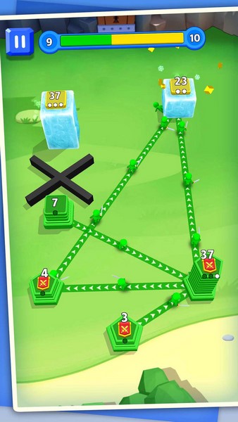 6、不断挑战:两条线都已满时,可以断开一条线重新出兵,轻松的操作,成功的挑战。
