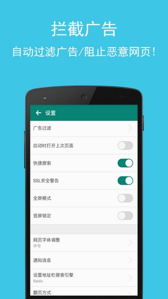 广告拦截:拦截各种烦人的弹窗和广告,给您一个舒适的浏览体验.