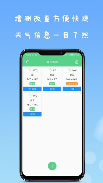 5、可以自主添加常用常识,能够一手掌握关心的城市天气信息;