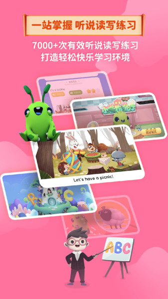 2、7000+次有效听力输入,6000+次开口次数,7000+次阅读输入,500+次书写练习,语言能力均衡发展,听说读写一站掌握;