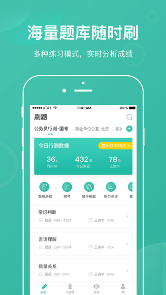 公考行业中一款针对做题速度进行训练、实现在线PK的题库产品,提升行测做题速度就等于提高行测成绩。