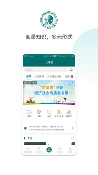 学习平台承载大量在线课程,名师直播互动、线上线下相结合的培训活动,