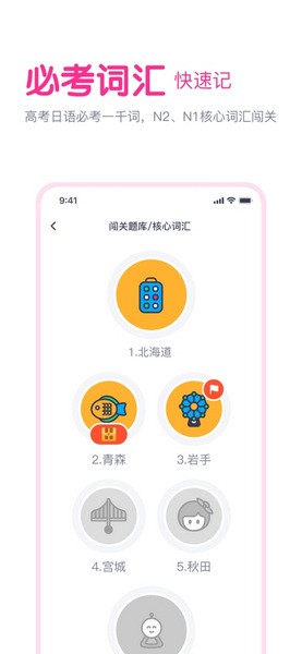 1、樱花斩中设计了多种多样不同模式的闯关模式和题库,通过有趣的游戏设计来让用户进行单词以及语法的记忆巩固,通过闯关能够激发用户学习的动力,对于日语学习变得更加热情。