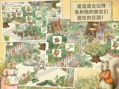 彼得兔庄园破解版是一款非常有趣的休闲模拟经营游戏,玩家需要帮助彼得兔和他的小伙伴们建立一个美丽的庄园,在里面种植各种农作物并出售以获取收益。游戏采用复古手绘风格,背景是欧式童话世界,画面清新治愈。游戏中有29个角色,每个都很生动有趣,还有优美的交响乐作为背景音乐,让人感觉仿佛回到了童年时代看动画片的美好时光。