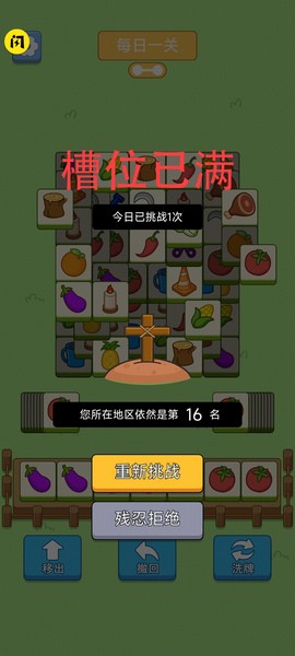 3.全部方块都消除完毕,即可顺利通关,一旦七个卡槽满了意味着挑战失败。