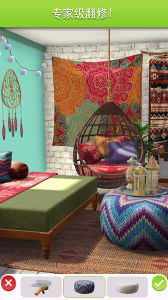 这是一款让人不知不觉就沉迷的游戏。其实对消除类的游戏并不感冒,但这个的UI和画面都偏写实,一些房间的改造方案都可以做实际家居装潢的范本咯。完成之后感觉是被刊登在杂志上的,小众设计师的装修作品,有款地毯的图案跟家里的一样,代入感蛮好的。