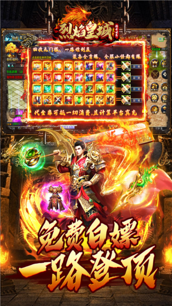 3、免费福利:游戏为玩家提供了众多免费福利,如上线就送自动回收、自动拾取、多倍爆率等。此外,还有免费聚宝盆活动,玩家最高可领取百万元宝。