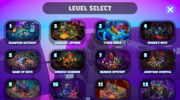 3、利用微型机器人的技能和道具,解决难题,抵达关卡终点。