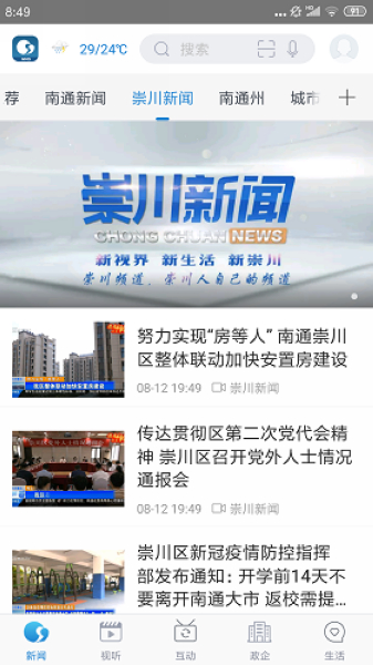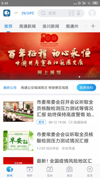 7、新闻版块设有“南通、快讯、热点、县市、公告”,给用户提供最新的国际、国内重大新闻和本地热点新闻,使客户端用户第一时间掌握国际、国内及本地要闻