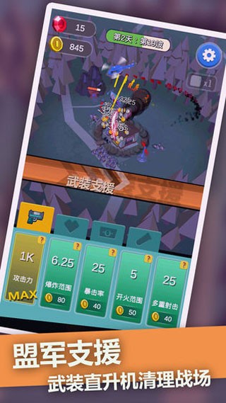2、丰富的技能Buff:升级解锁你的科技,研究新的技术,用科技保护你的阵地!