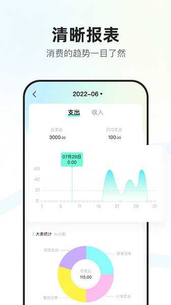 「统计图表」清晰的图表展示, 让你轻松查看收支情况