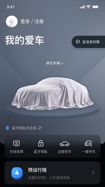 蓝牙钥匙、一键寻车、车况查看、预设导航、钥匙借出、车辆管理、