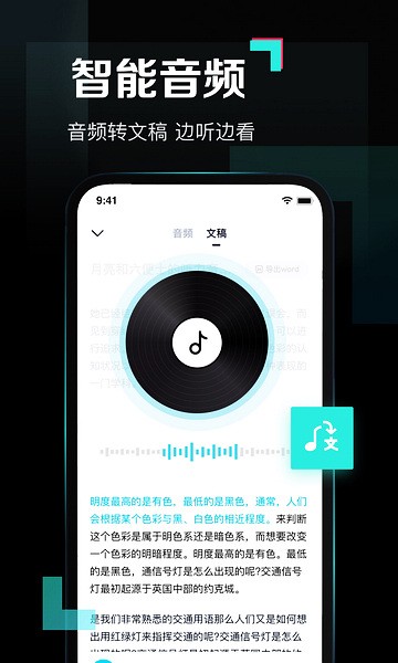 【音频转文稿】:一键转文稿,边听边记更方便,会议记录、语音访谈、课堂录音全搞定。