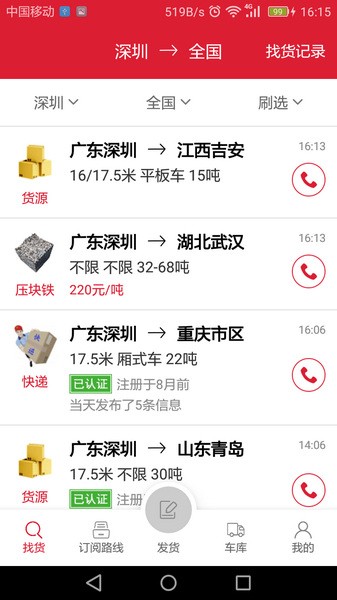 4、在线自主找货,在这个应用之中可以找到来自全国各个地区的海量货源;