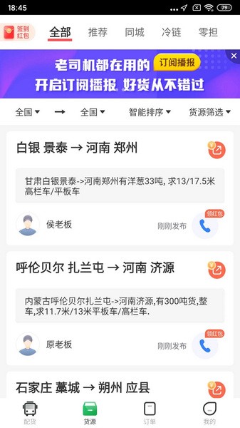 2、司机可以在此找到来自全国的货运资源,每个人自己可以自主选择合适的货源