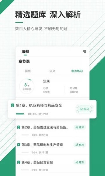 3、优化注册审批流程,提高工作效率,实现执业药师注册管理信息化,所有的知识点划分为不同的章节;