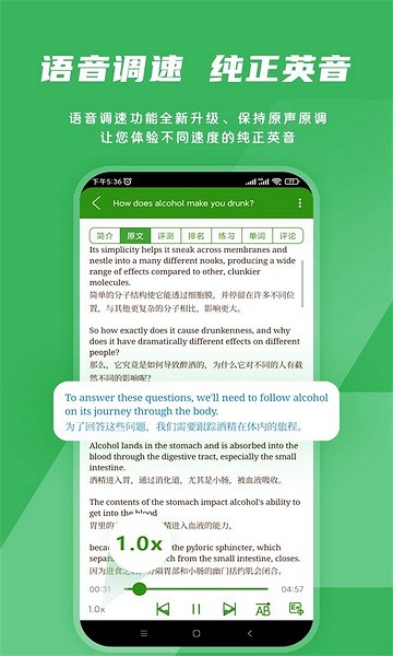 4、【强大功能】语音调速、单句播放,只显示英文,定时关闭、学习闹钟、学习记录显示等功能,还有比我更强大的吗。
