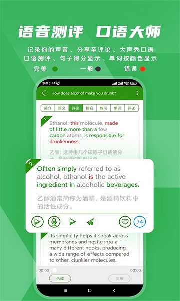 作为一名资深用户,我想分享一下我使用这款应用的体验。它提供了来自英国各大网站的高质量音频内容,经过爱语吧专业编辑团队的精雕细琢,这些资源不仅丰富多样,而且质量上乘。这为我的听力训练提供了坚实的基础,使我能够接触到地道的英语发音。此外,爱语吧英语具备先进的口语评测功能,利用智能语音技术自动评估发音水平,指出发音错误及缺陷。每次跟读练习后,我都能够得到详细的反馈,这对提高我的发音准确度起到了重要作用。