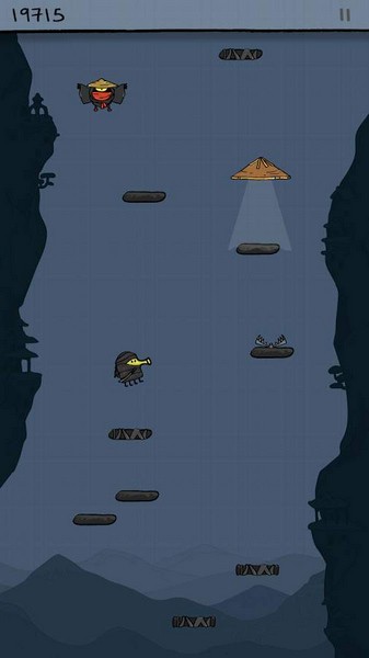 7、玩家使用重力感应操作时,将手机向一侧倾斜时,小怪物会飞到另一边,所以当玩家面对一边没有平台一边有很多平台时可以采用这种方法。