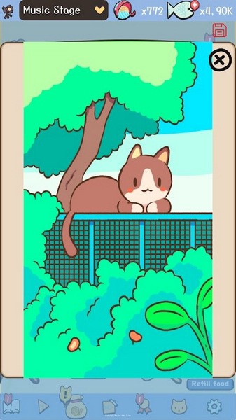 1、清新可爱的游戏画风,在手机上尽情的撸猫体验;