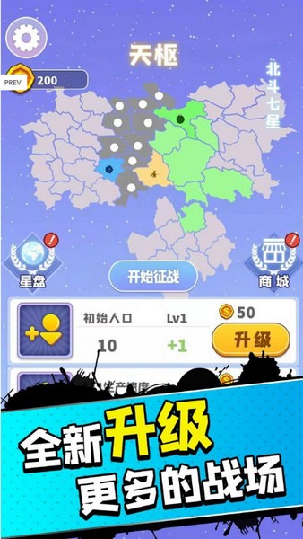 1、游戏刚开始只选一个敌人比较容易上手也很简单,只要将所有的点数拿去扩张很快就赢了。