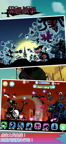 黑色战争是一款有着剪影风格的休闲类游戏。在这个游戏世界中,许多的国民因为受到黑暗生物的攻击而变成了可怕的恶魔,你临危受命去磨灭恶魔之巢。这里有着丰富的兵种可以供你选择,每个兵种都有着各自的作战特点,如果能够合理利用那么便可以战胜庞大的恶魔军队。你可以通过升级军队、道具和你的城堡来增强自己的实力。还在犹豫什么,赶紧带领军队拯救这个世界吧。