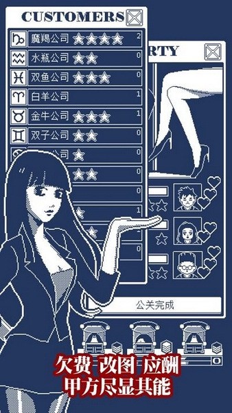 在项目接取方面,除了即用即接的项目,玩家也需要进行投标竞标。根据平时积攒的能力进行竞标,并最终判定是否中标。在中后期几乎全都是竞标项目的情况下,玩家不仅仅需要积攒能力点数进行判定修正,更需要平时打好人脉才能获得更多不错的项目。