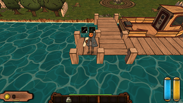 7、可以在工作台用金币换取需要的工具,如果有怪物来袭,可以拿起工具,然后点击“Shift”进行攻击,怪物被击倒后会有零件和道具掉落,攒够零件修好船,就可以通关了。