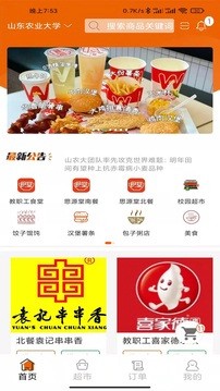 会自动定位,根据用户的所在位置分析学校,推送附近的各种美食和商品;