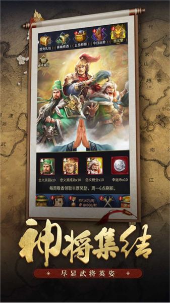 2、三国经典武将悉数登场,搭配不同属性,释放霸气技能,一举成功。还有一键放置。