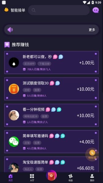 4、平台任务数量多,种类多,极速审核让你完成即得佣金。