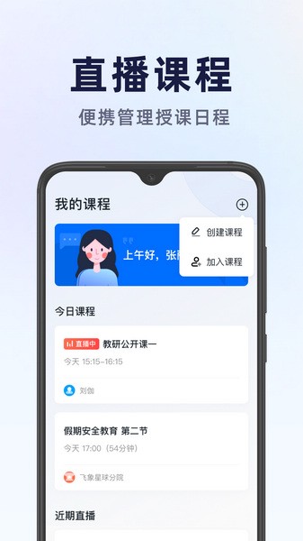 教师可以在线设置直播课程,并邀请其他师生参与在线视频。