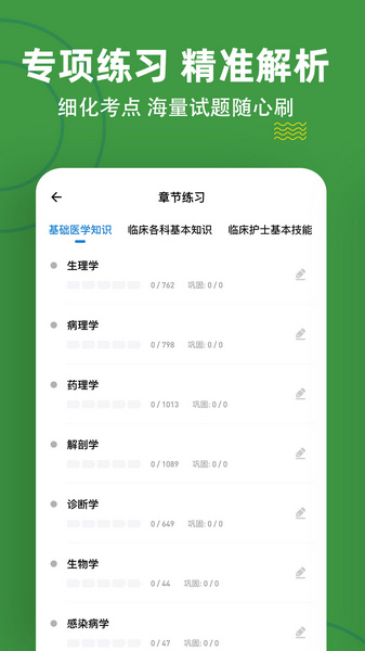 【智能刷题】护理三基练题狗APP根据每一位考生的在线做题、模拟训练等,提供精准的能力评估报告和精准的考点掌握情况,针对性的进行专项练习。