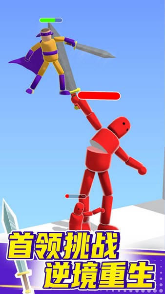 武器选择:游戏中的武器选择自由,不仅有威力巨大的大宝剑,还有其他强力装备,如锤子等。玩家可以不断收集强力武器,通过提升自己的装备和实力,挑战越来越强的敌人。