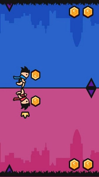 跑酷游戏:点击改变重力方向,控制角色收集更多金币即可获胜!