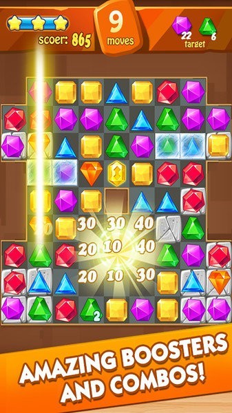 ◆交换并匹配3个宝石在一行中删除它们。