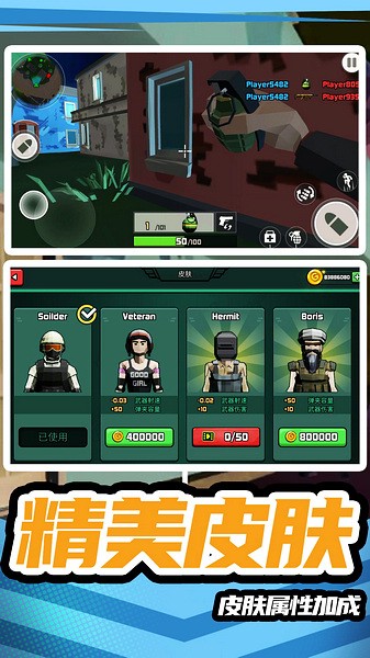 《模拟战场英雄2》是一款超有趣的射击游戏,玩起来特别带感。复古像素风的画面让我一开始就被吸引住了,玩法跟吃鸡有点像,但分成了两个阵营,感觉更有对抗性了!游戏中有很多武器可以解锁,用金币就能买,挺有成就感的。