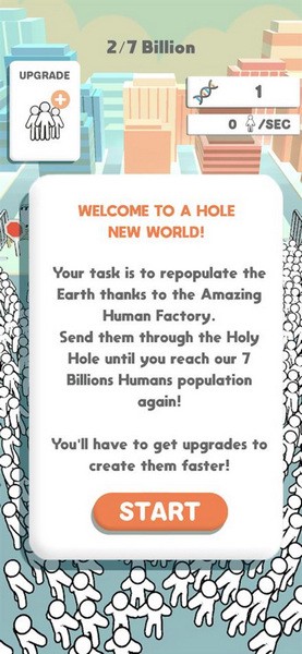 神圣的洞游戏破解版中古怪的事情发生了,平整的地面上突然出现了一个大洞,伴随而来的还有奇妙的人类生产工厂和大量的货币,无数的黑白小人被源源不断的生产出来。只有尽快将路面上出现的庞大黑洞填满才能够避免更多的未知事件发生,这非常考验工厂的生产速度,而及时的升级设施和增加生产线能够非常好的解决这一难题,让黑㓊得以尽快填满。