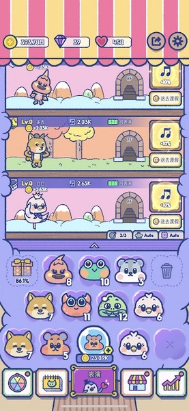 《动物舞者破解版》是一款治愈感十足的模拟经营游戏,玩法简单却充满了乐趣。游戏里有很多可爱的Q萌小动物,玩家可以通过合成它们获得更高阶的角色,并让这些小家伙们上台跳舞表演。舞台上的舞蹈越来越精彩,感觉特别有趣。