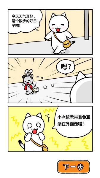 1、开始白猫的大冒险3游戏后,我们进行一段剧情介绍,然后点击下一步正式开始游戏