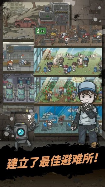 游戏特色鲜明:在核战争后的废墟中求生,探索未知世界,寻找资源并建设安全的避难所。玩家需要管理居民幸福度、布局设施(如发电室、宿舍、餐厅等),同时研发装备和生产物资。新手可以通过引导熟悉玩法,选择适合的角色进行探险。