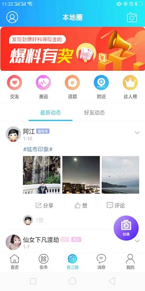 1、打开app并进入首页,切换到【街市】模块,点击右上角的发布图标。