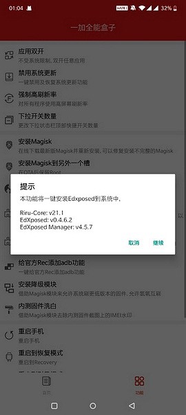 3、一键安装EdXposed。