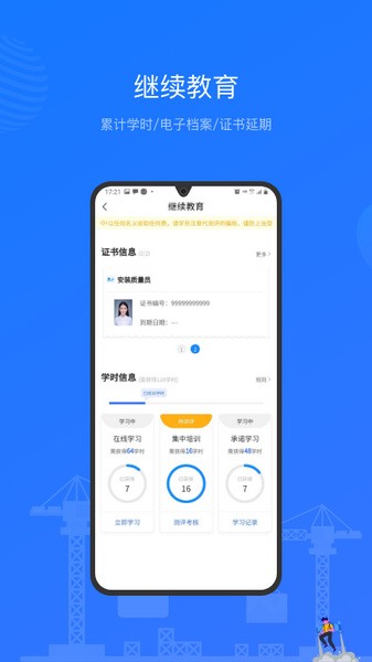 继续教育是针对已获得从业资格证书后,更新有效期而进行的后续教育管理。通过教育学分的建立及管理,考核机构能够清楚的了解到用户的学习情况,从而再次为用户颁发从业资格证书。
