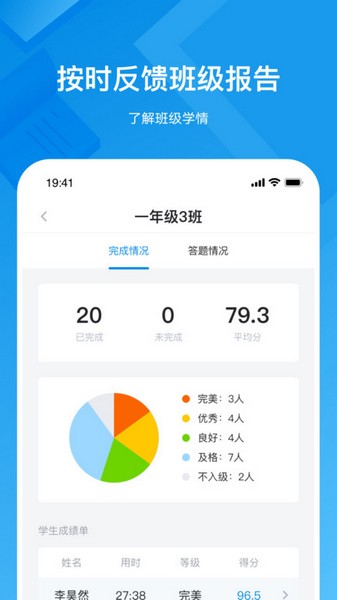 1、作为中小学生老师辅助教学的工具,协助老师开展科学的语言诊断测试。试卷无需老师参与批改,学生完成后老师即可查看班级答题情况,省心又高效。