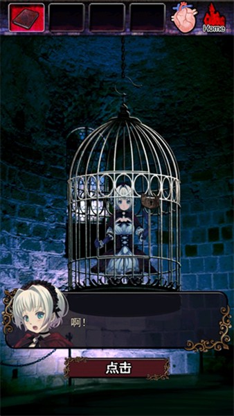 7、接着往右进入另一个场景,一个妹子都关在鸟笼里,用钥匙打开鸟笼,将她解救出来,然后她就跟了你了。本章节到此结束。